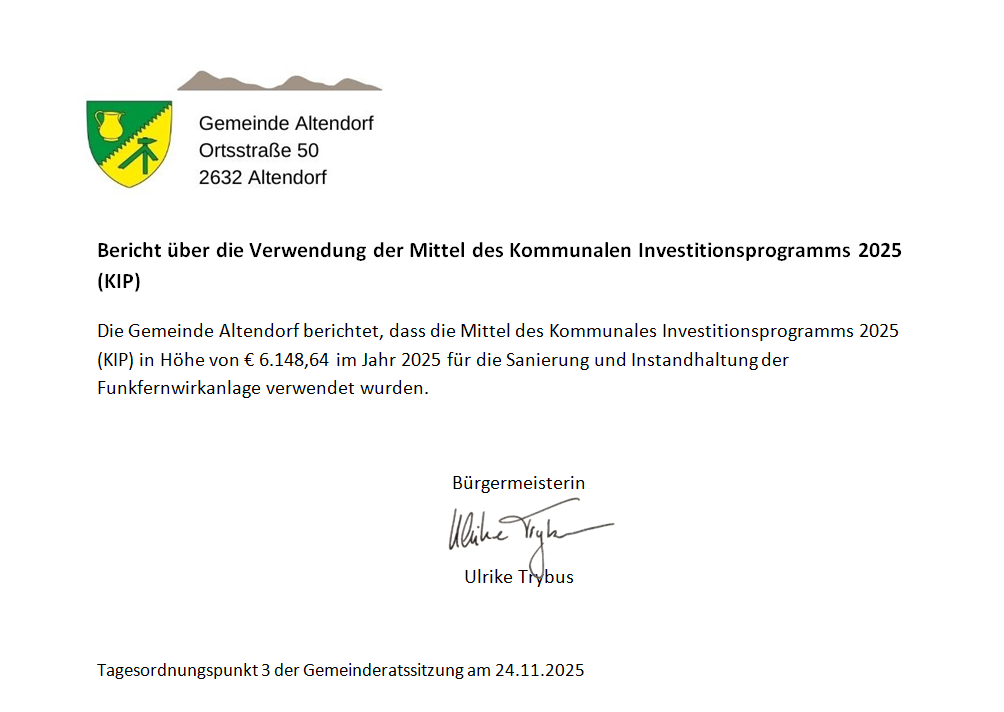 Bericht über die Verwendung der Mittel des Kommunalen Investitionsprogramms 2025