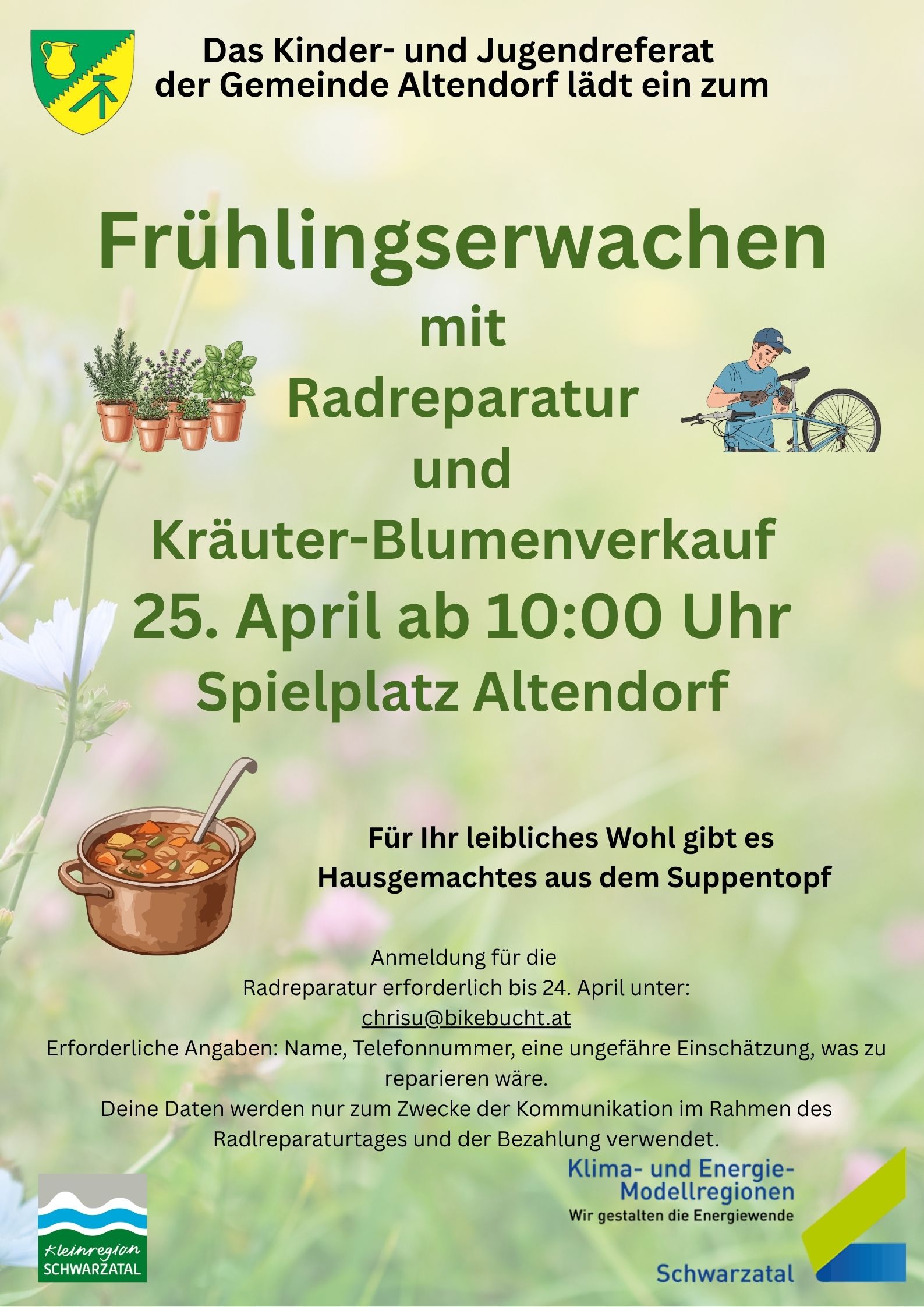 Deine Daten werden nur zum Zwecke der Kommunikation im Rahmen des Radlreparaturtages und der Bezahlung verwendet.