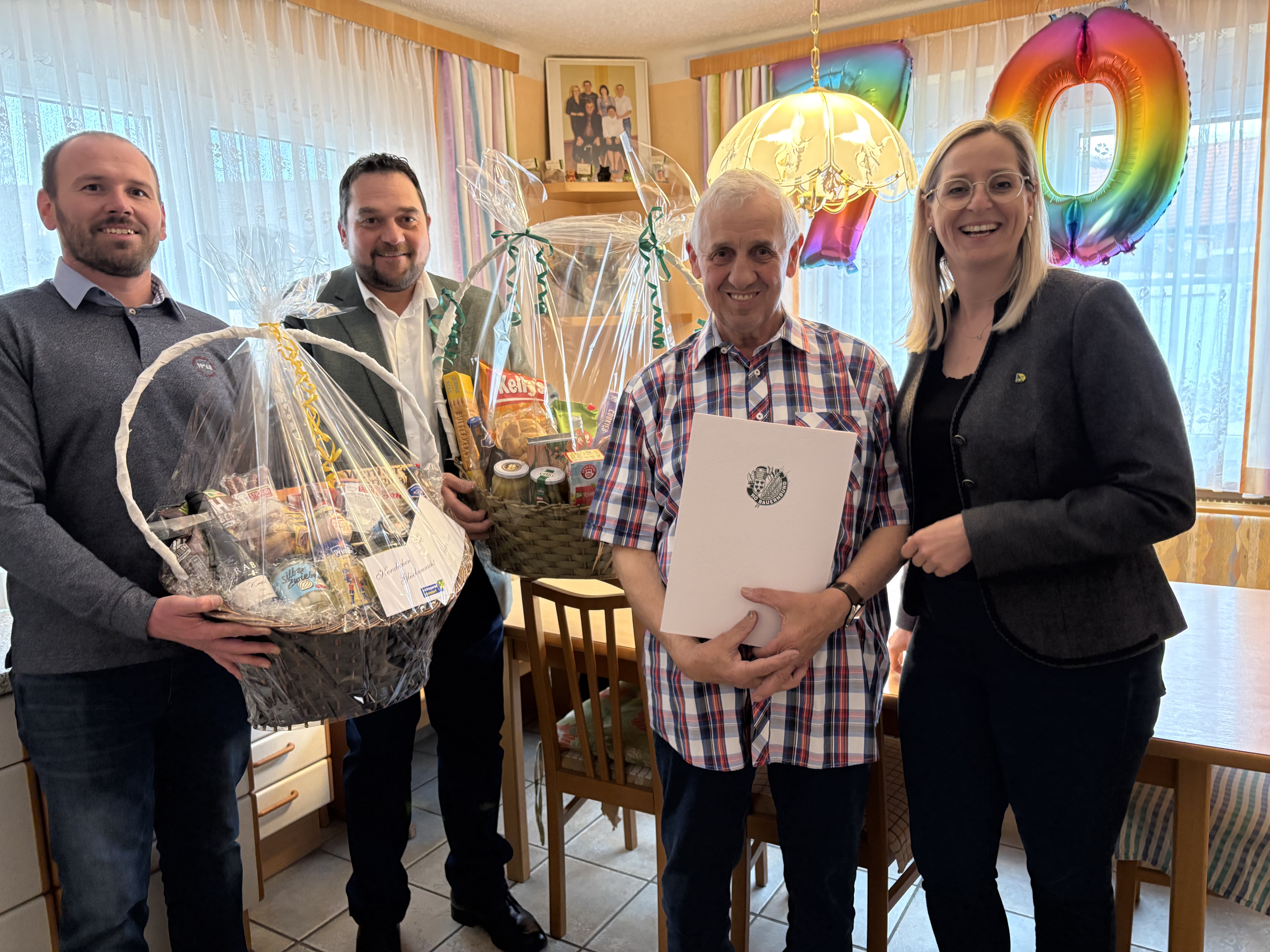 Bürgermeisterin Ulrike Trybus gratulierte Herrn Johannes Zwerger herzlich zu seinem 70. Geburtstag. Vizebürgermeister Thomas Zierhofer sowie Gemeinderat Stefan Farnleitner schlossen sich als Vertreter der Volkspartei Altendorf und des NÖ Bauernbundes den Glückwünschen an und überreichten Aufmerksamkeiten.