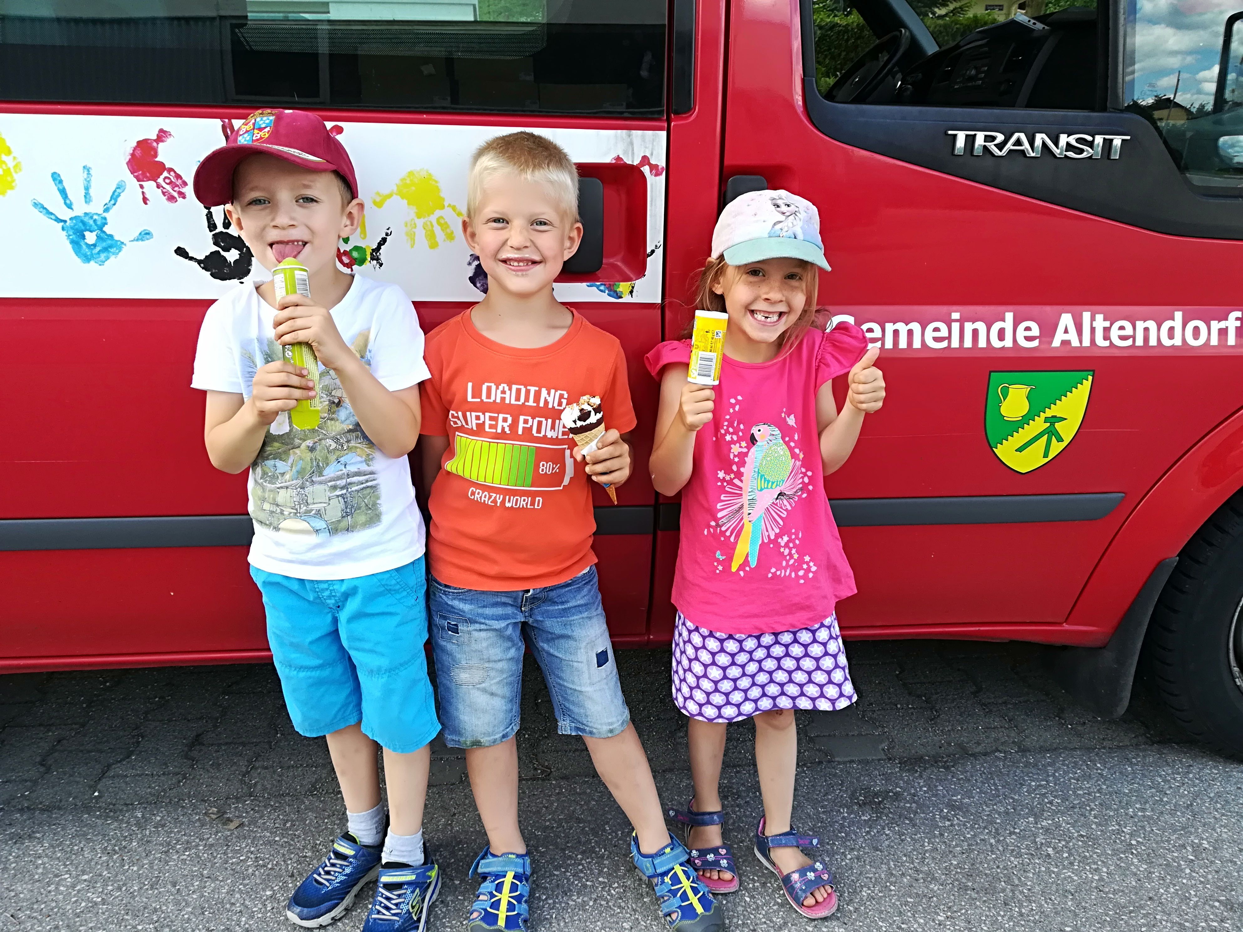 Wie bekannt, sind es nur noch wenige Tage bis zu den Sommerferien. Dies bedeutet, für manche Vorschulkinder, nur mehr wenige Fahrten mit dem KIGA-Bus "Rosalinde" bevor es im September ab in die Volksschule geht. So nahmen wir dies zum Anlass, uns zum Abschluss ein Eis zu genehmigen. Kurzerhand wurde der Bus zum Picknickbus umfunktioniert und das Eisessen konnte beginnen. Ich wünsche allen Vorschulkindern noch einige tolle Tage im Kindergarten und einen aufregenden und guten Start in die Volksschule. Eure Taxilenkerin, Doris Morgenbesser